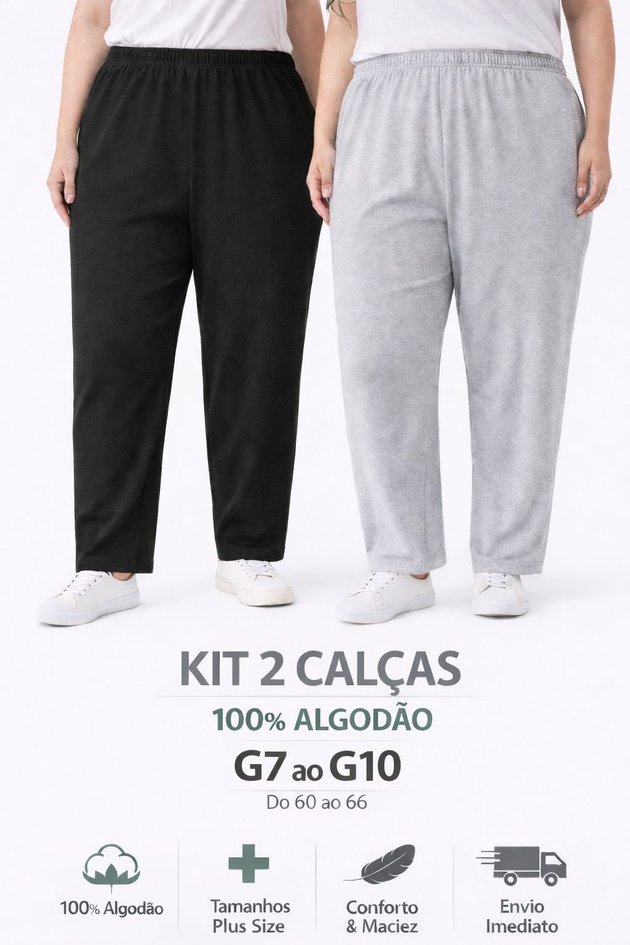 🌸 Kit Calças Extra Plus Size em Algodão – Do G7 ao G10 🌸