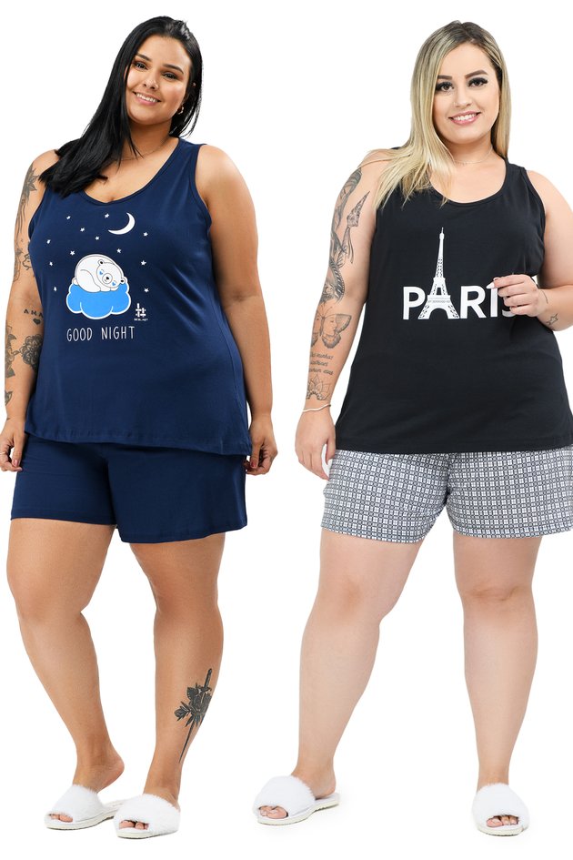 kIT com 2 Conjuntos pijama feminino Plus Size confeccionado com o melhor algodão penteado, tecido leve e muito confortável.